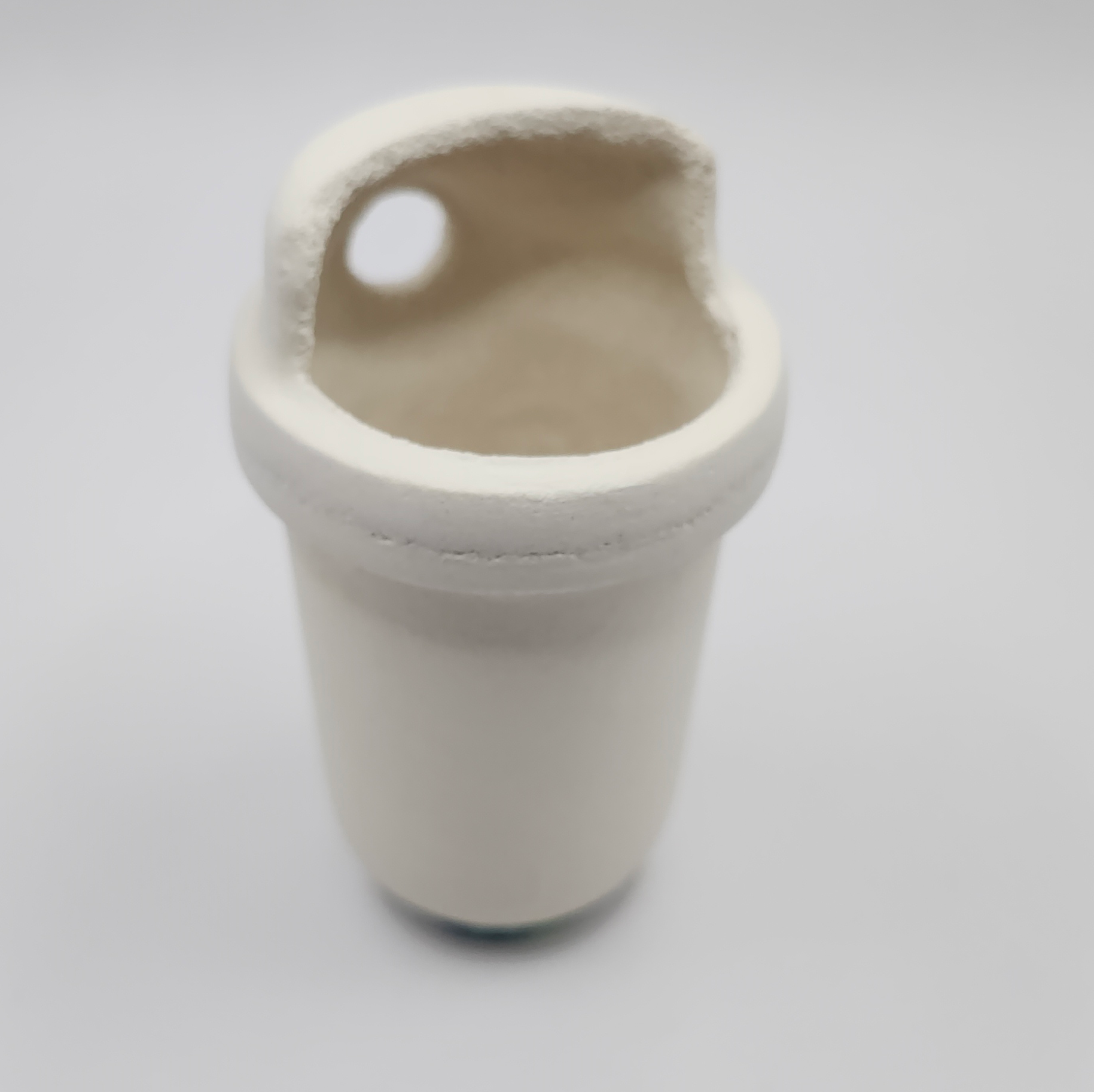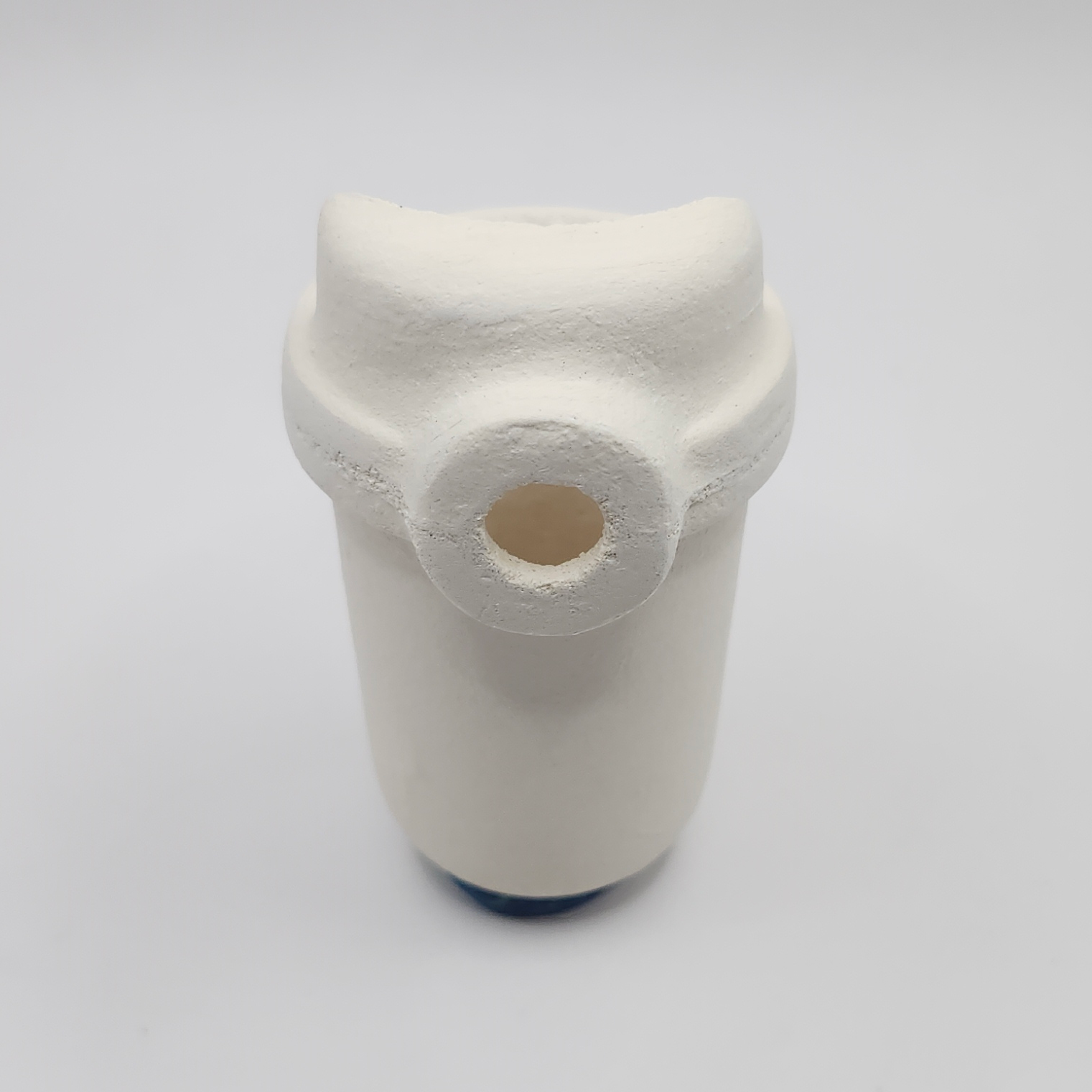 This is a crucible designed for most modern casting machines with a medium-sized crucible holding plate. Made from composite materials that last longer than quartz or ceramic crucibles. Diameter at the neck is 1-3/8"